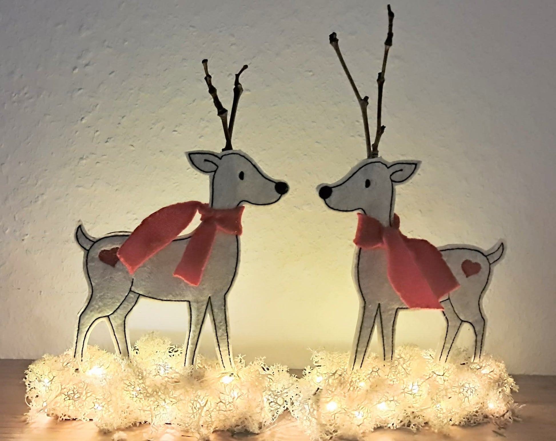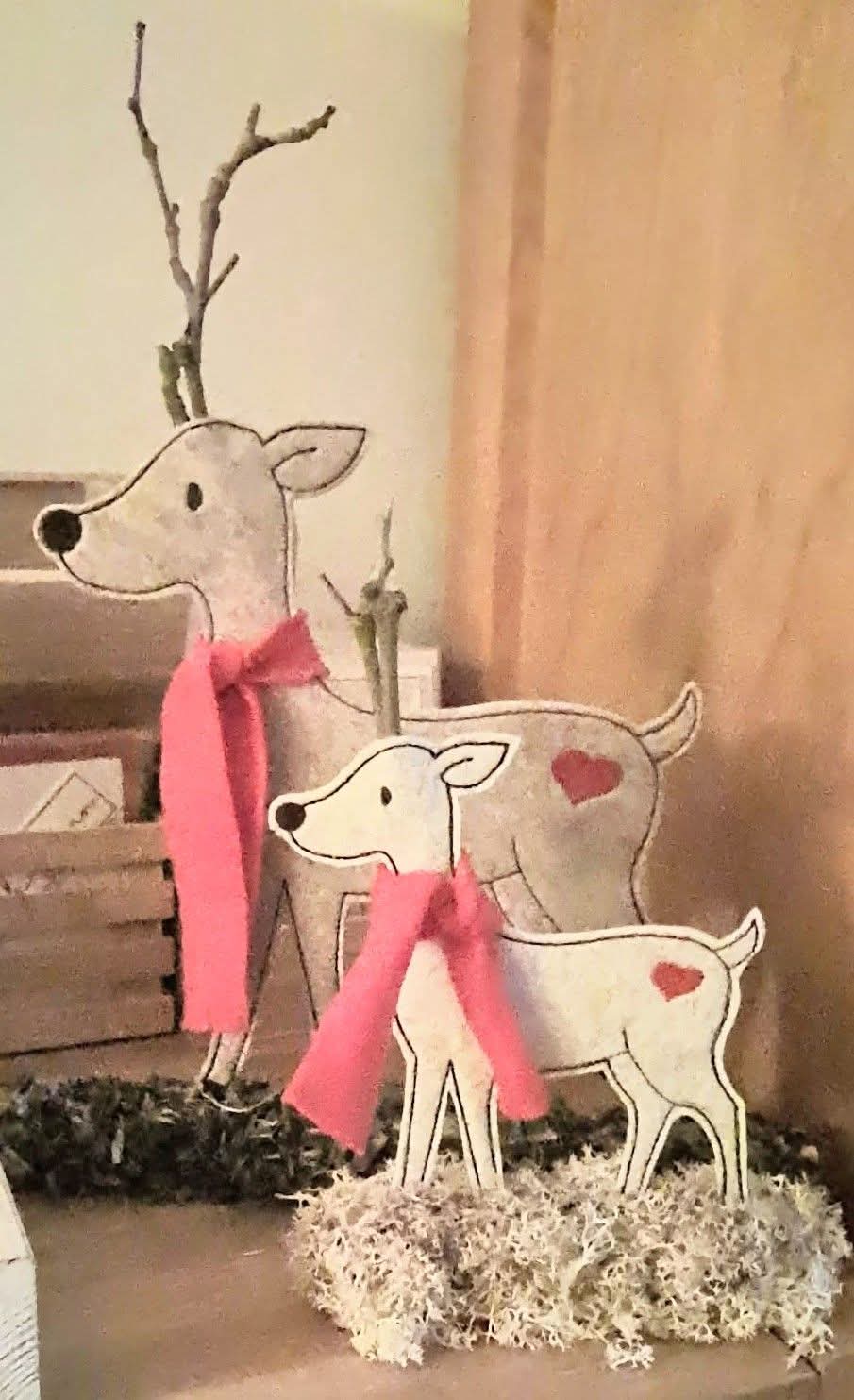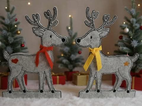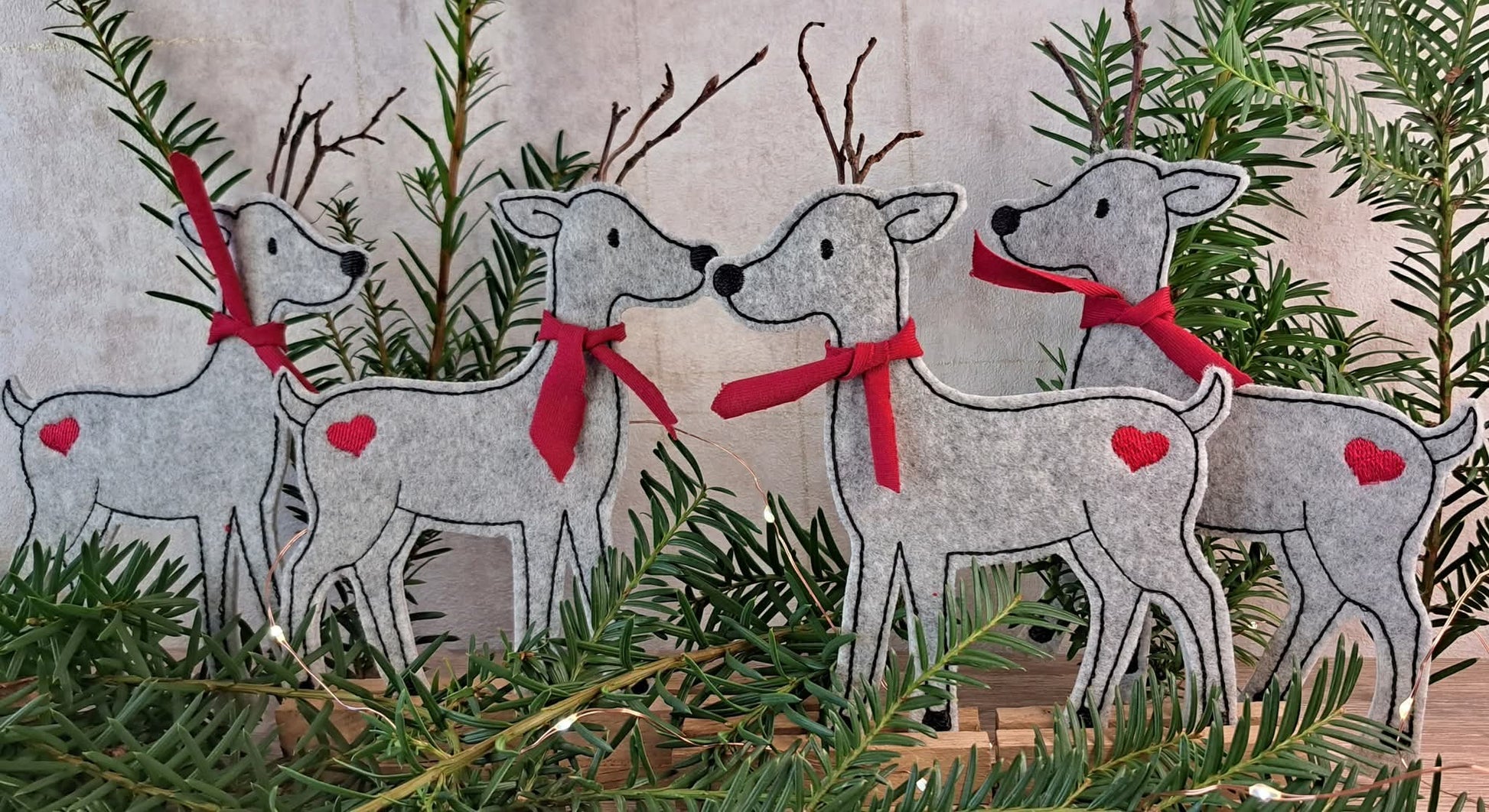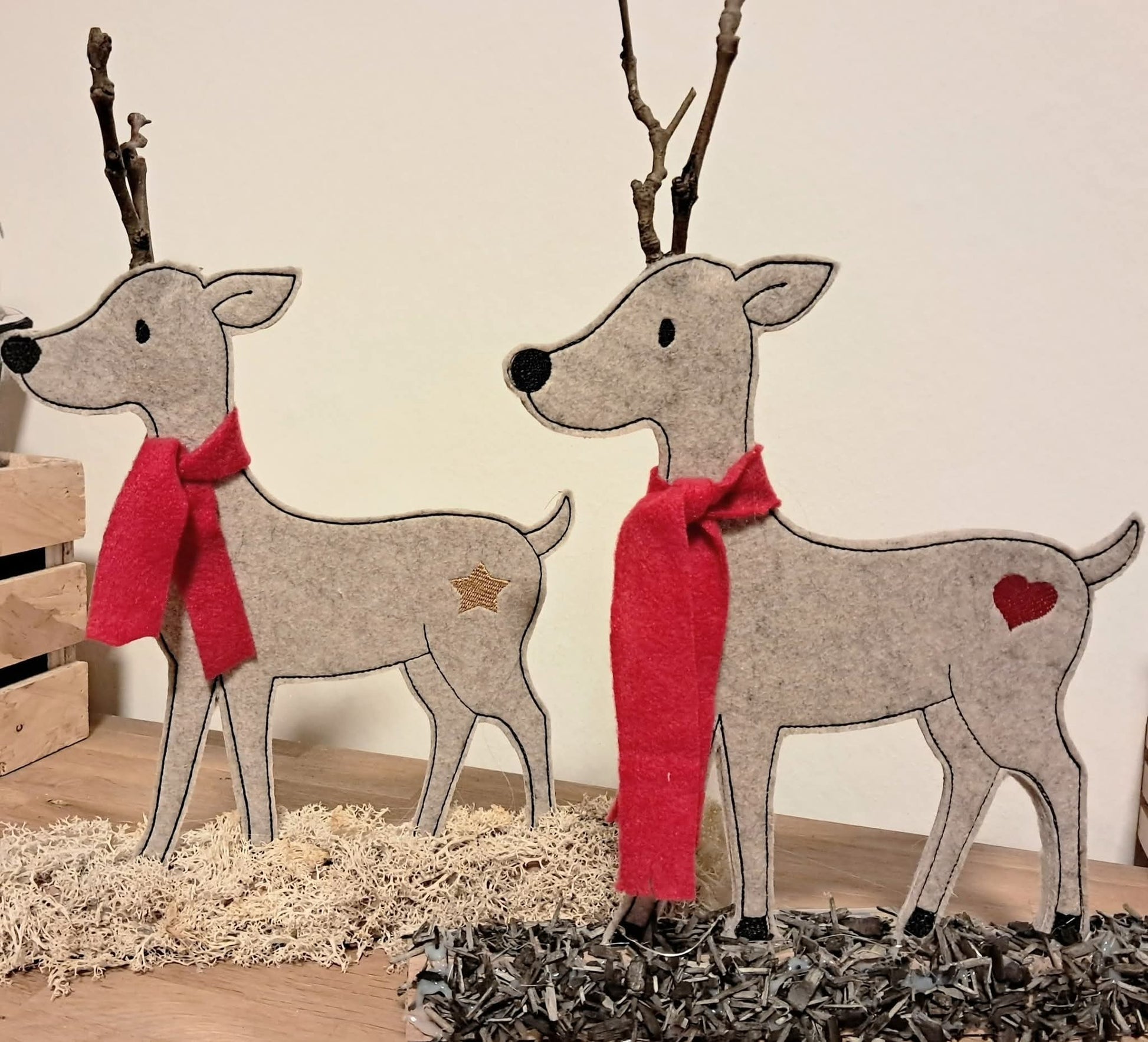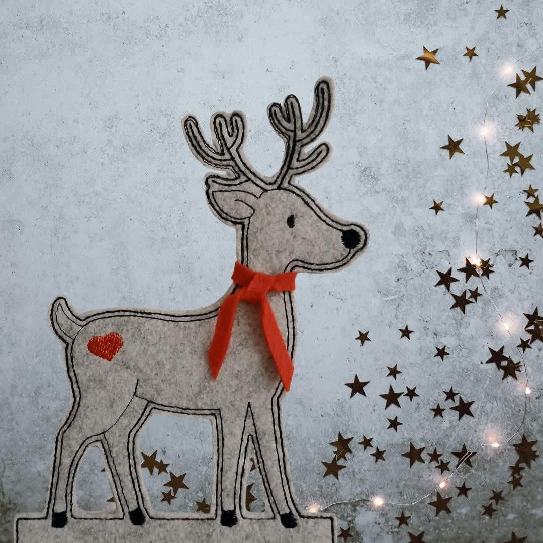 Zwei Rentiere (Stern und Herz) in unterschiedlichen Ausführungen und Größen. Die Klötzchendatei gibt es für den 13x18 Rahmen. Einmal mit Geweih und einmal zum stecken des Geweih aus Stöckchen oder ähnliches. Dann gibt es die Rentiere als Niceline je in 7 Größen. Und dann noch unsere Applikation in je 6 Größen.Insgesamt sind das 30 Dateien.