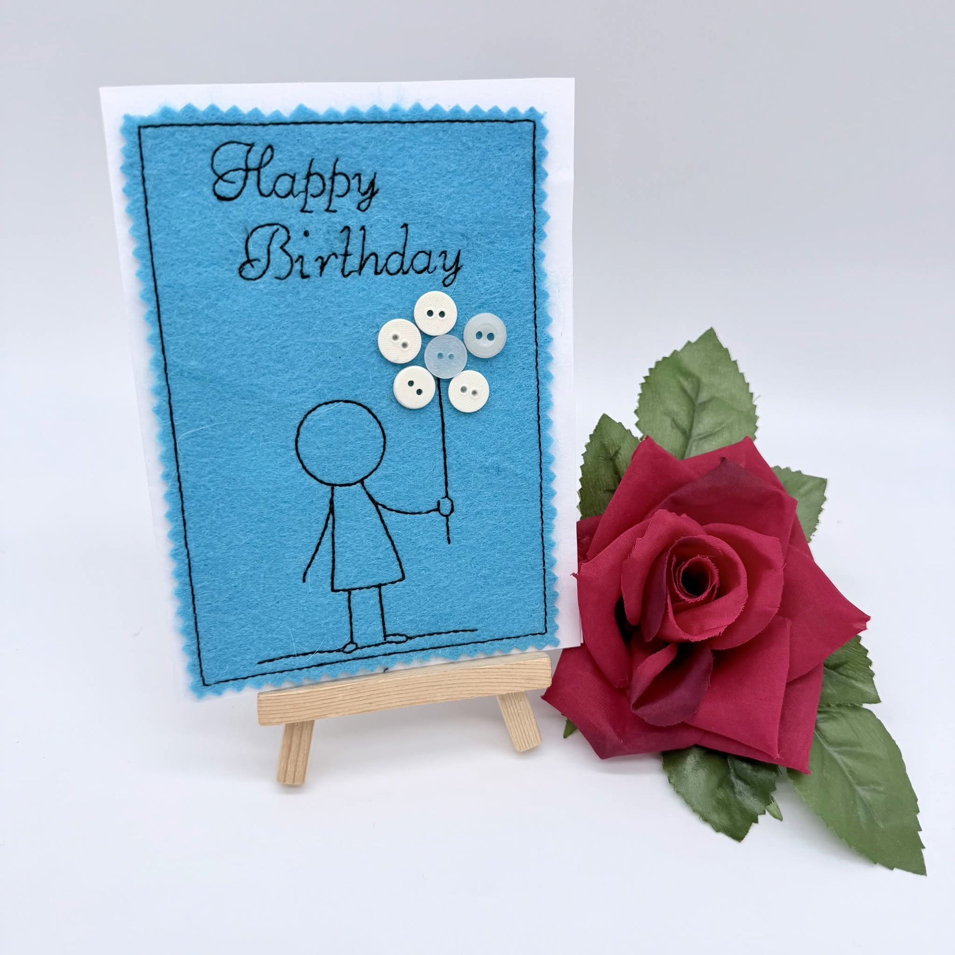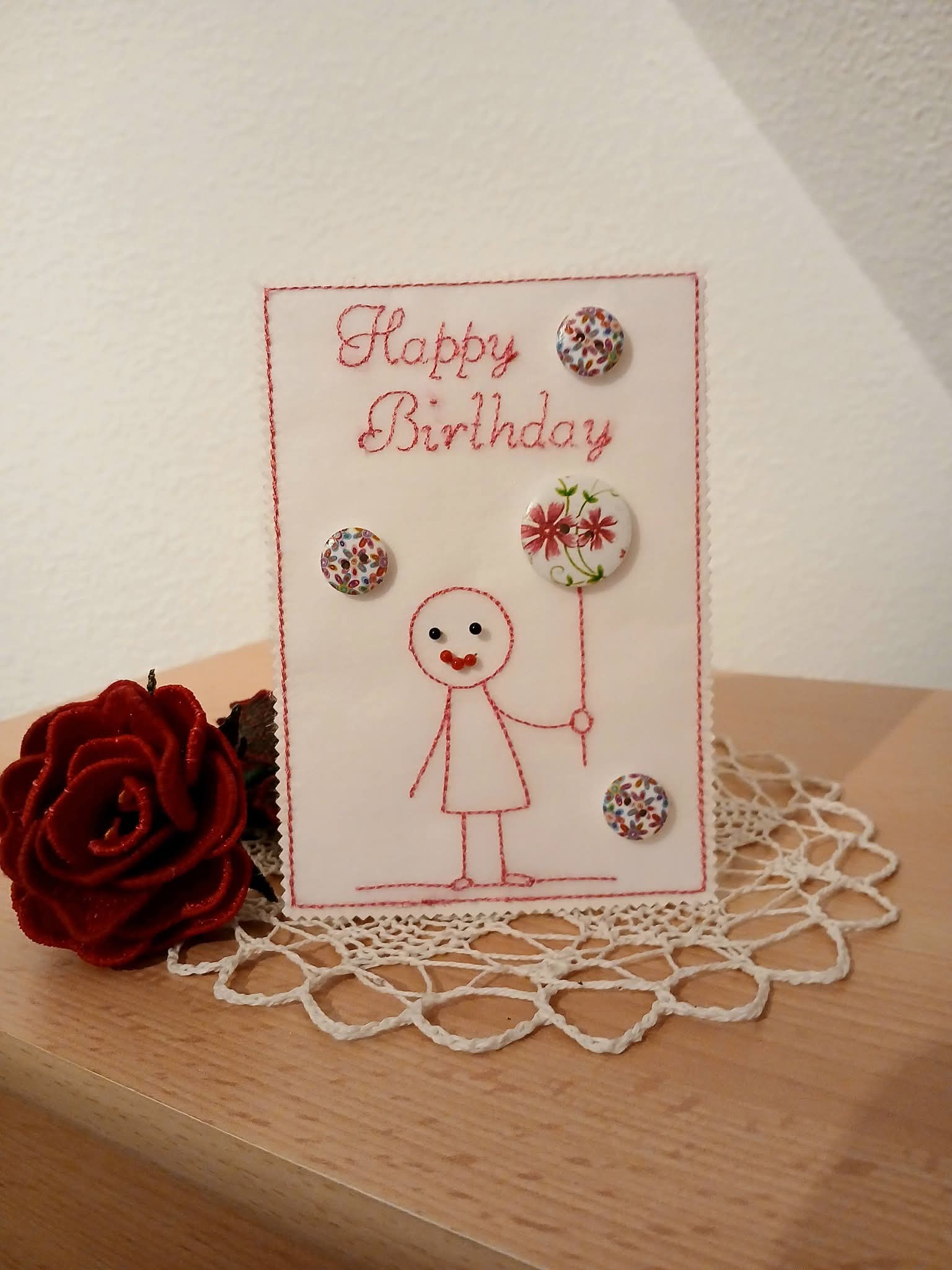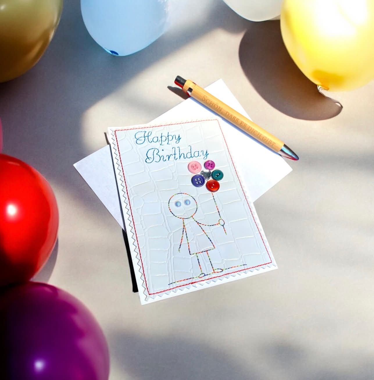 Ein KnopfKarten Set bekommt ihr hier. 3 Motive in je zwei Größen. 9x14 und 10x16. Einfach sticken und dann aufkleben. Individuell mit Knöpfen gestalten. Fertig.
